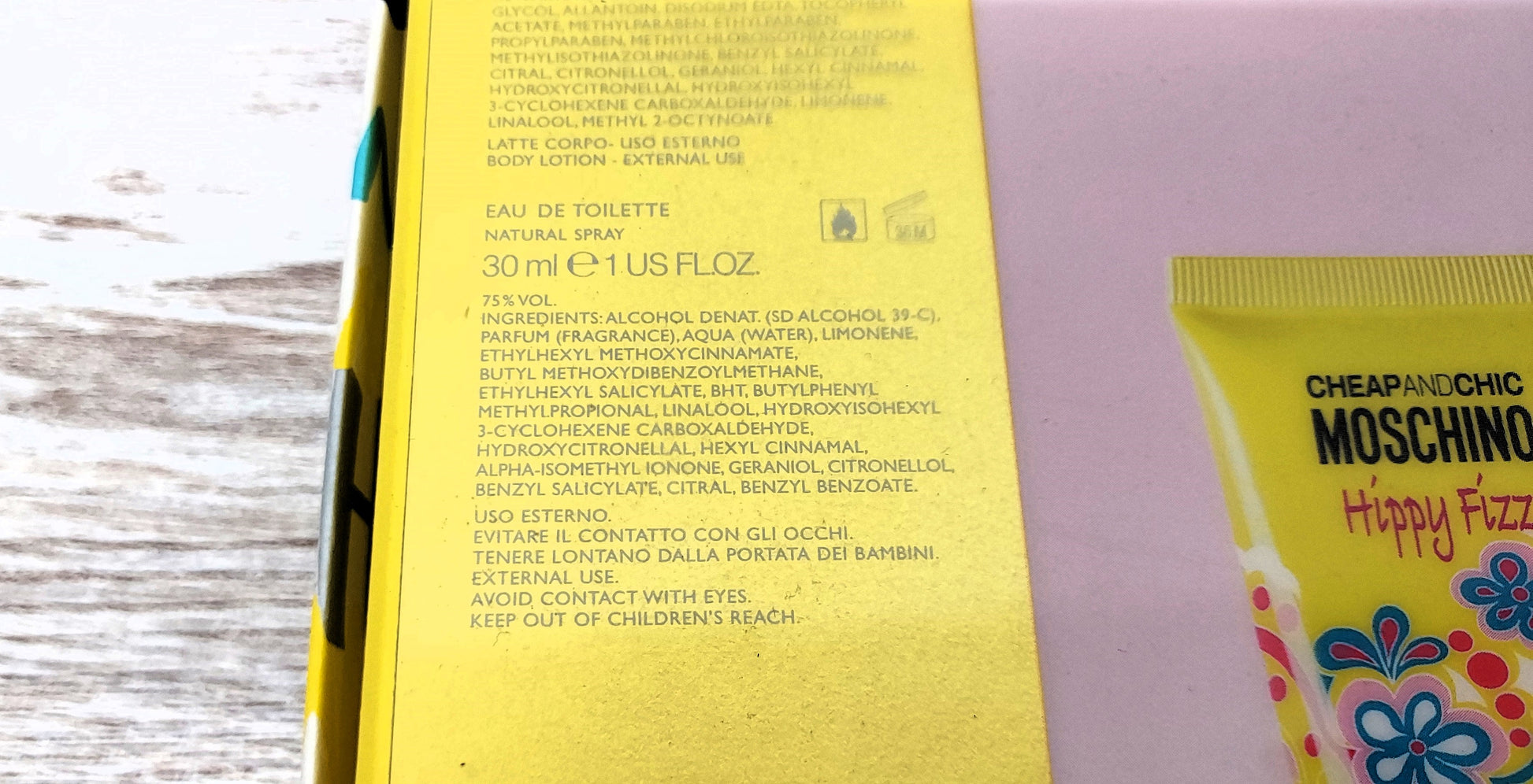 Hippy Fizz Moschino EDT (eau de toilette) 30ml + Body Lotion 50ml. Discontinued.