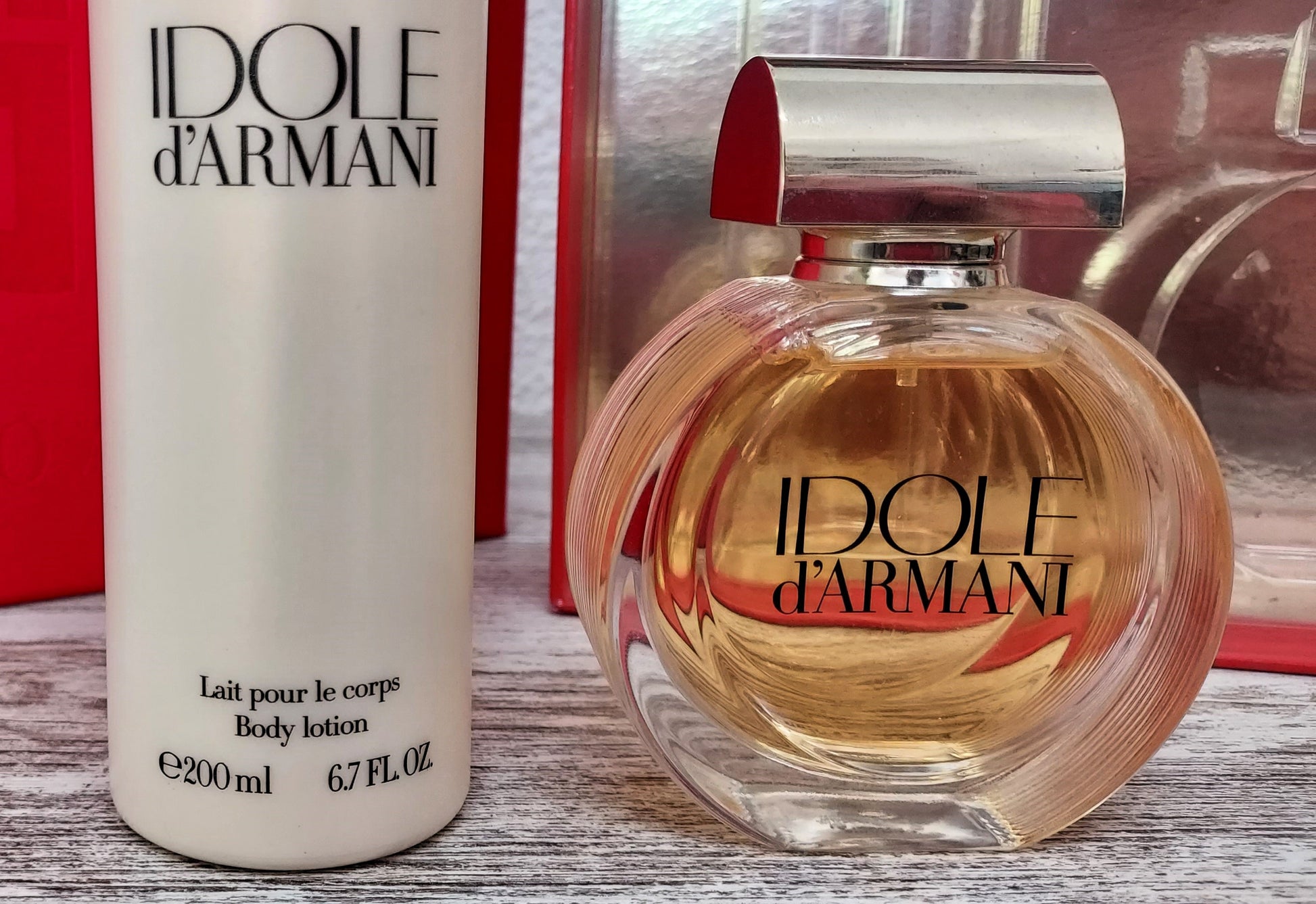Idole Armani EDP (eau de parfum) 50ml + Body Lotion 200ml. Discontinued vintage formula.