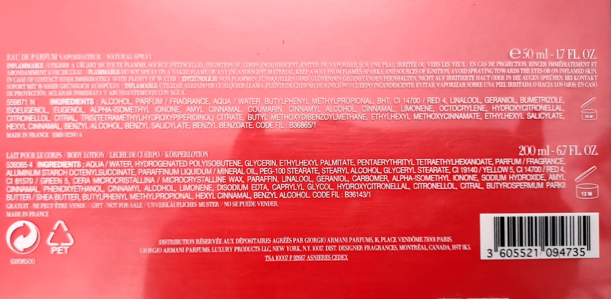 Idole d'Armani by Armani EDP (eau de parfum) 50ml + Body Lotion 200ml. Discontinued.