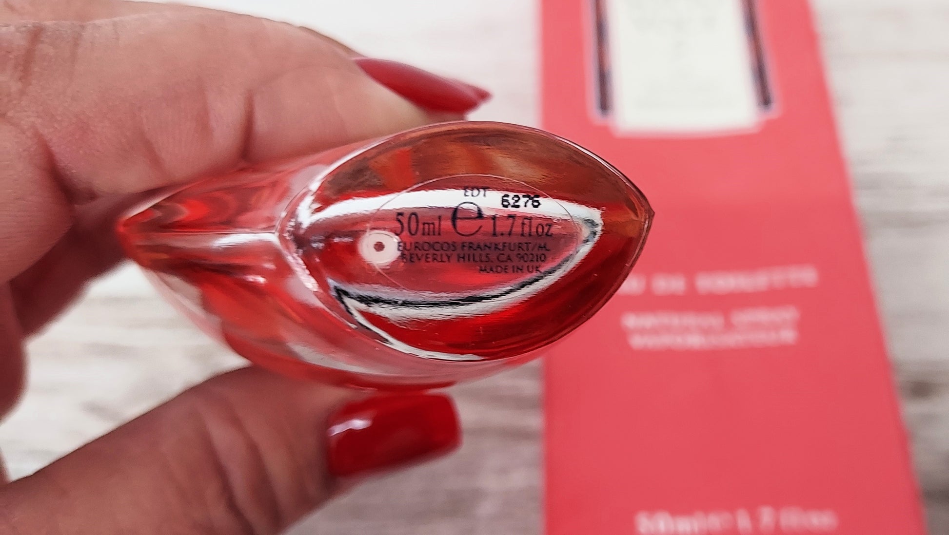 La caja está levemente deteriorada. El tapón tiene un rasguño (ver imagen Nº 9).